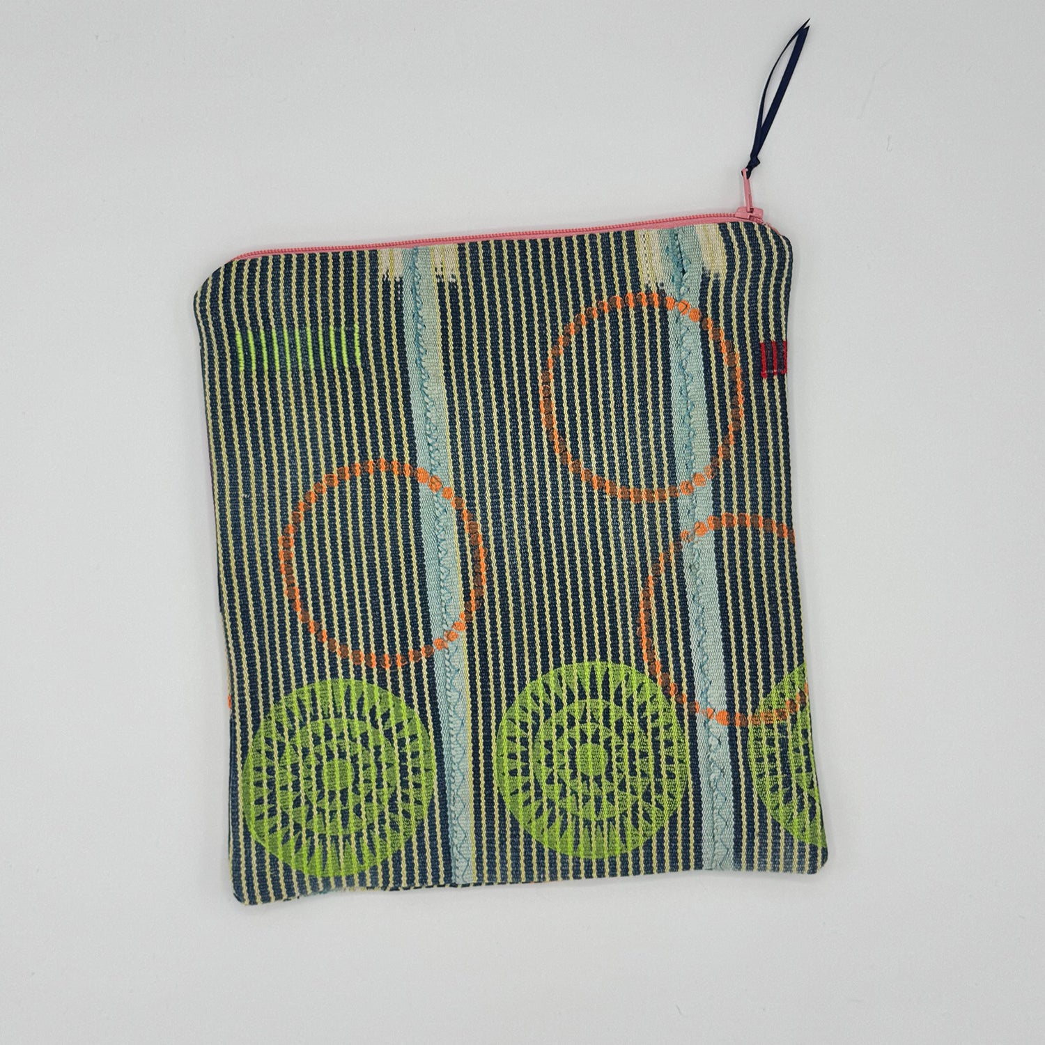 Hand-printed zipper pouches made with Moroccan textiles. Produced in limited quantities, each pouch carries subtle variation and the marks of the hand.