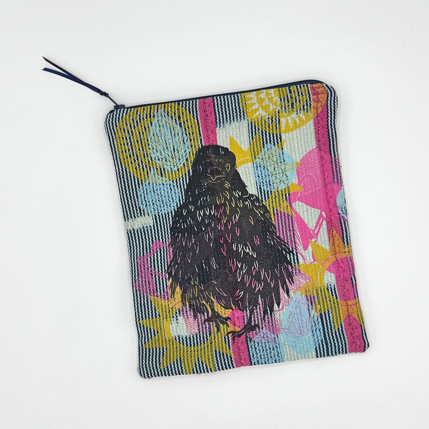 Hand Printed Fluffy Crow Zipper Pouch - Valori Wells