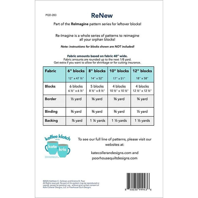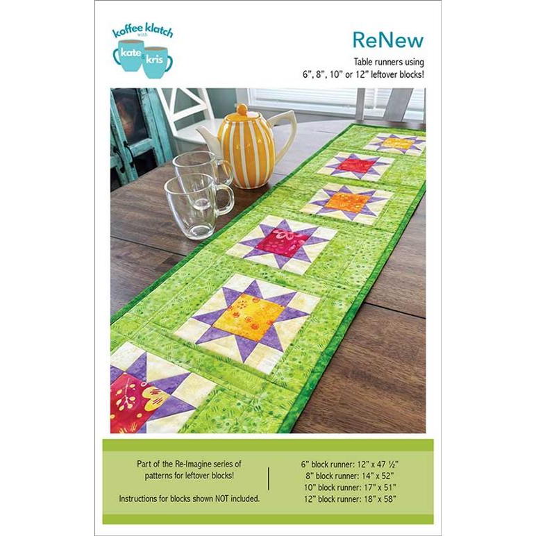 Have leftover quilt blocks? Turn them into a fun and functional ReNew table runner! The pattern is suitable for advanced beginners to intermediates. The pattern works well with small panels, embroidery projects, pre-cut strips, or scraps!