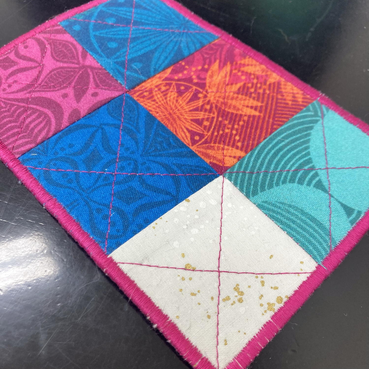 This fun fabric postcard was made using Valori Wells Grace fabric collection. The back is stamped so it's ready to go in the mail. As long as no other embellishments are added to it, you can mail this postcard through regular mail. Fun right?!