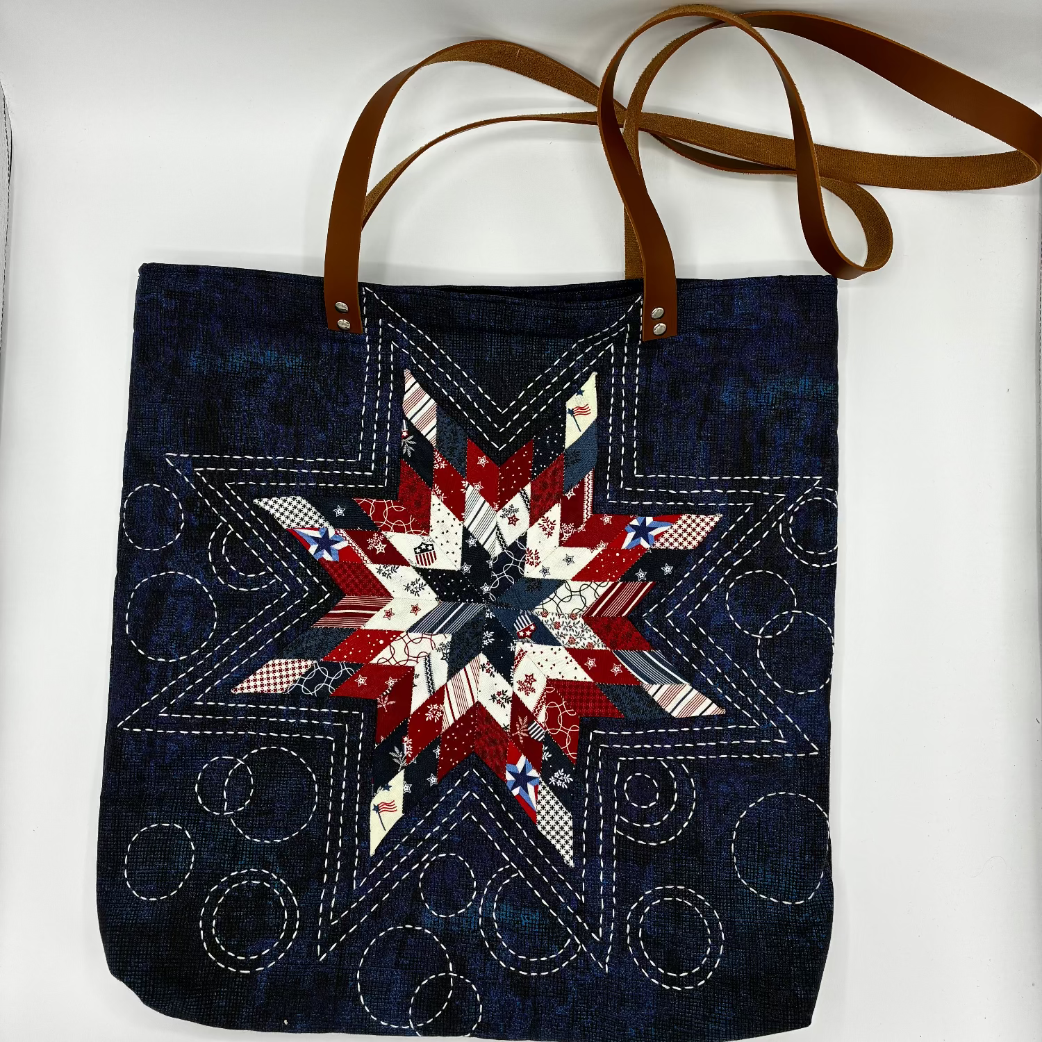 The centerpiece of the bag is a hand-stitched Lone Star. The bag is hand quilted.