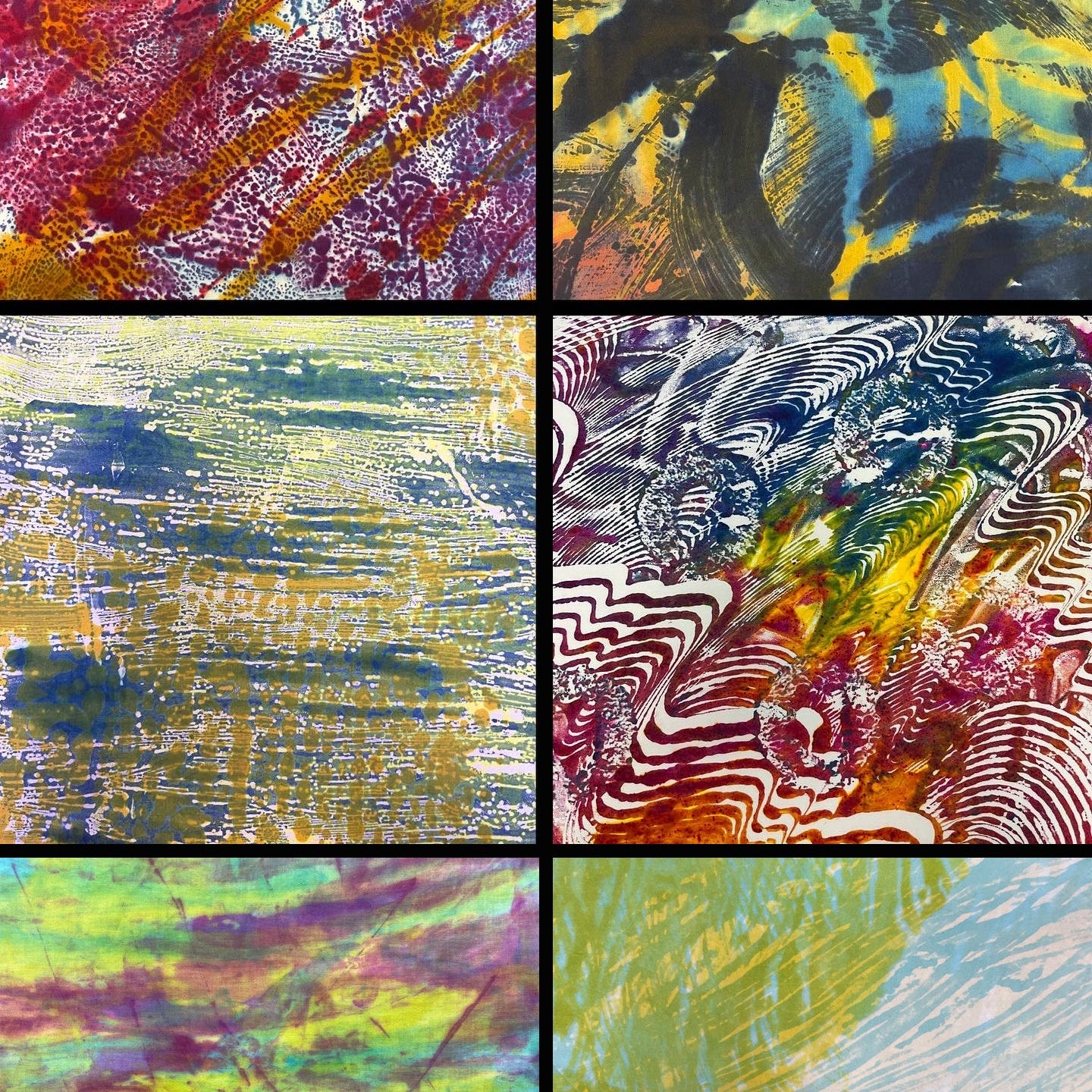 Let go of precision and embrace pure creative play! Using thickened fiber-reactive dyes, you’ll experiment with brushes, stamps, stencils, and more to create layered textures and expressive marks on fabric. This class is all about discovery—mixing color, building layers, and uncovering your unique artistic voice through surface design.