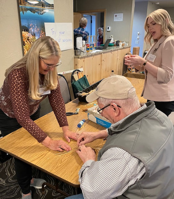 In this beginner class, participants will learn to use wheat straw to weave two plaits – the 7-straw Arrow and the 4-Straw Compass. These plaits can be woven around a wire core then bent and twisted and formed into interesting shapes like hearts, circles, stars, treble clef, etc. The ideas are endless.