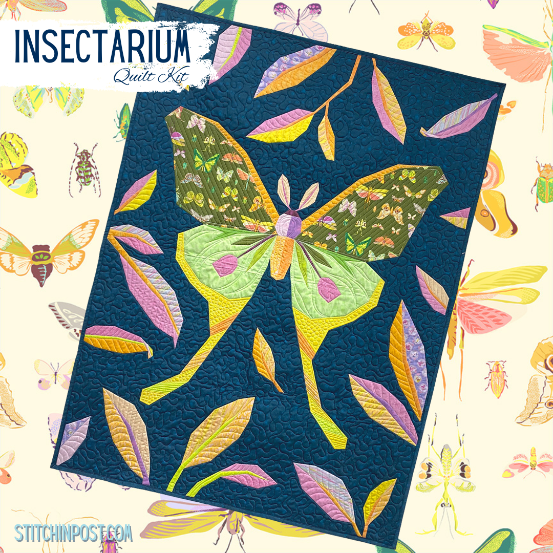 While she was designing Insectarium, Tamara Kate thought about the great time she had watching thousands of insects displayed in color at the Montreal Insectarium. She walked through a glass ceilinged space with lush gardens where butterflies flew all around. In remembrance of that experience she designed a pieced Luna Moth quilt.